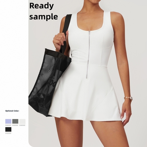 Rahat anti-pozlama yeni kadın yaz fermuar açık koşu Fitness spor elbise Logo ile Golf egzersiz tenis etek