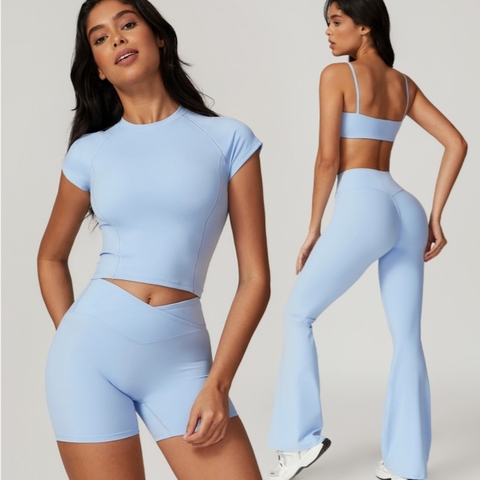 2024 yeni gelenler 4 parça çevre geri dönüşümlü kadınlar spor sutyen şort tayt Tops egzersiz spor Yoga seti